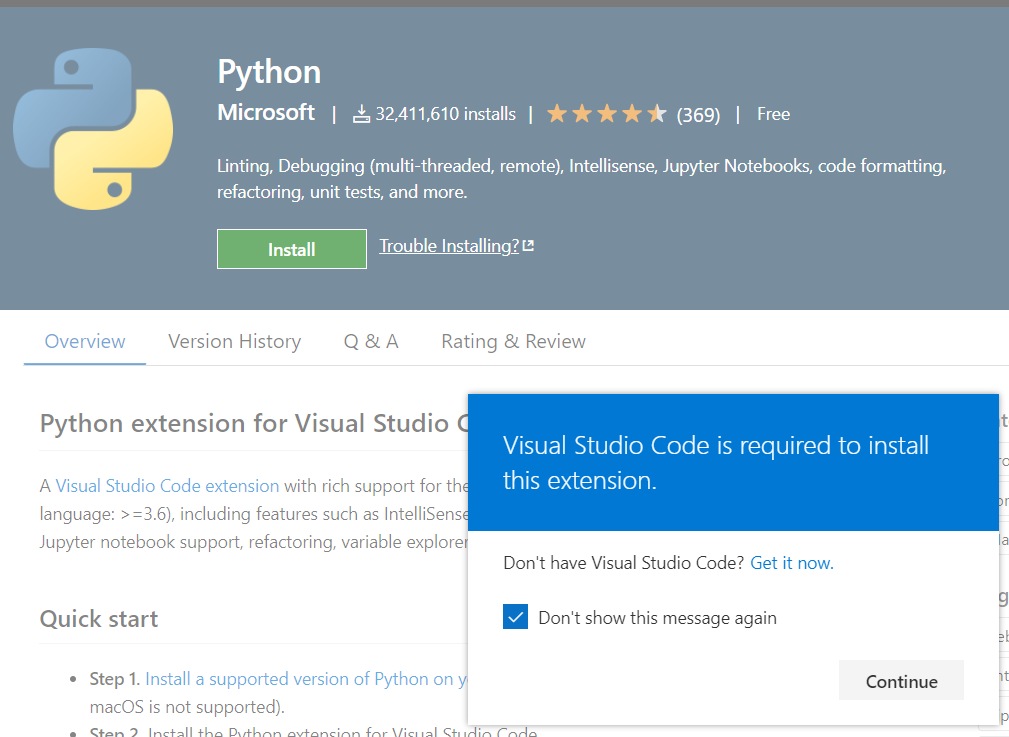 Click each link, then click Install. Hit Continue and Open if prompted to launch Code: