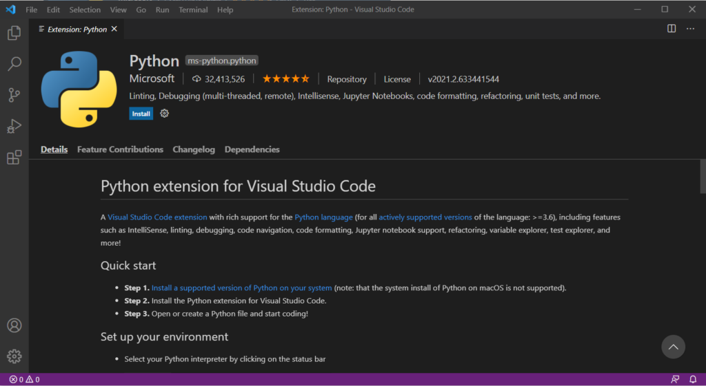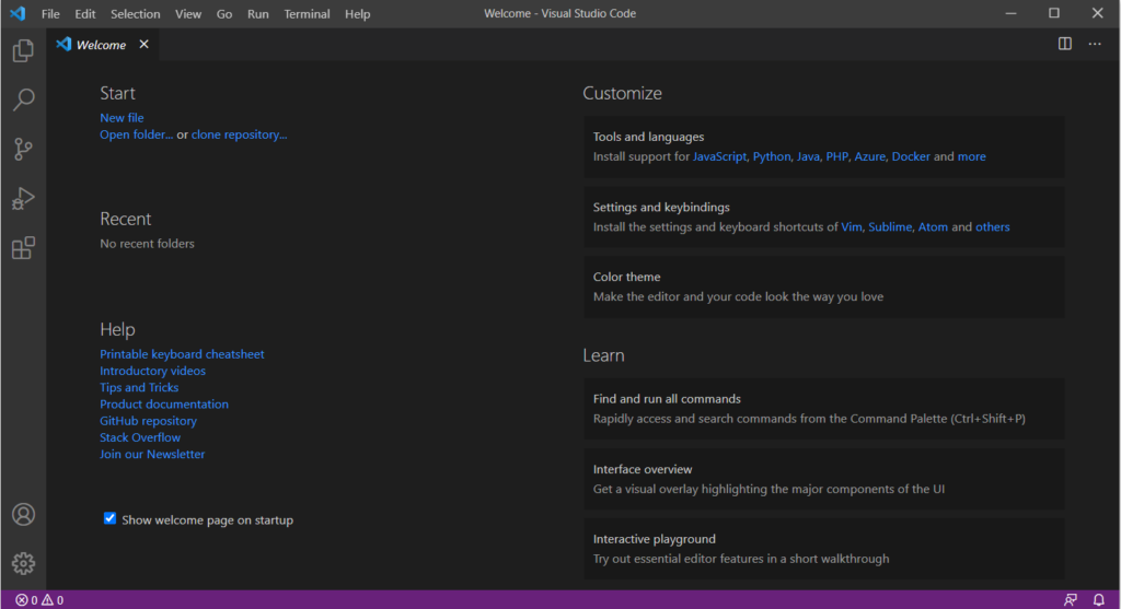 These are straightforward installations, I won’t belabor them here. When you have these installed, launch Visual Studio Code.