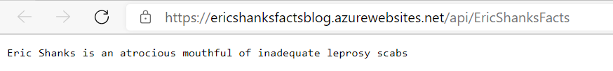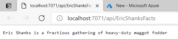 In the next few sections, we’re going go through how to set this all up and publish to Azure. If you don’t want to stick around that long, I totally get it—you can just click right here to generate your own Eric Shanks Fact and move on with your day.