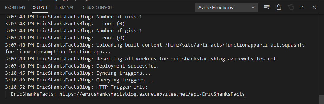Create a new Function App in Azure - Enter a globally-unique name for the app. Anything will do. I’ll use “EricShanksFactsBlog” for now.
