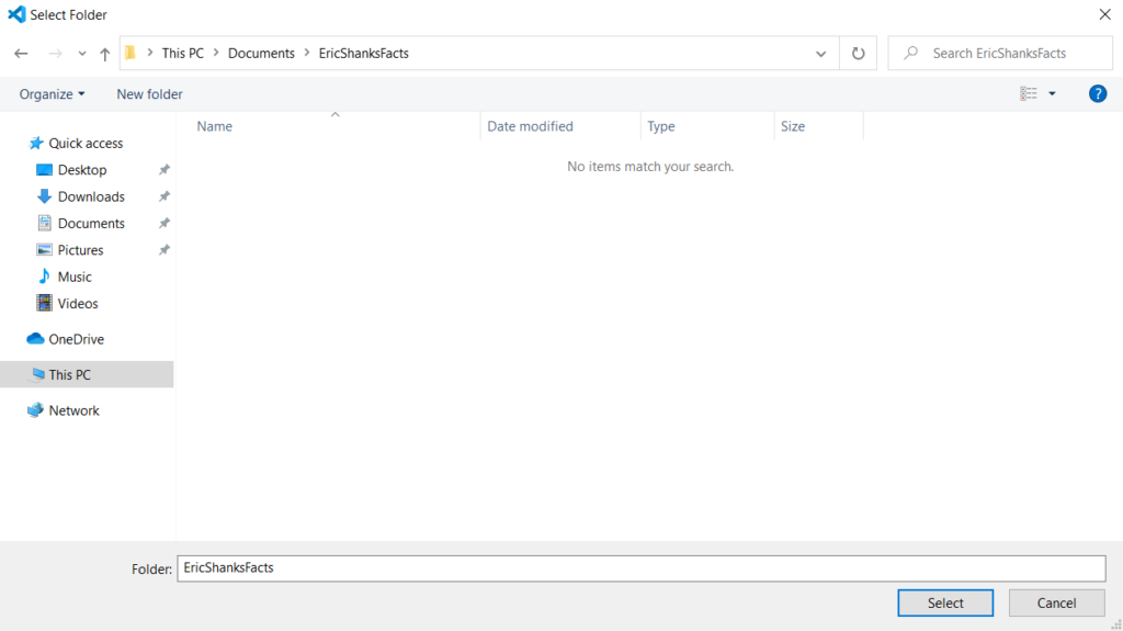 You’ll be prompted to select or create a new folder to serve as the project workspace. Pick or create one, and remember where it is.